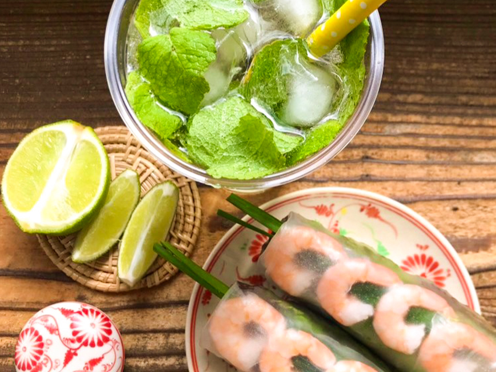 生春巻きと夏限定の自家製ミントライムソーダ